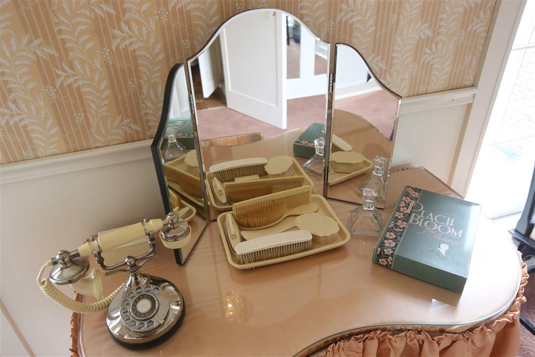 A vanity table staged in the dressing room which belonged to Page Stranahan is part of a tour offered at the Manor House at Wildwood Preserve.