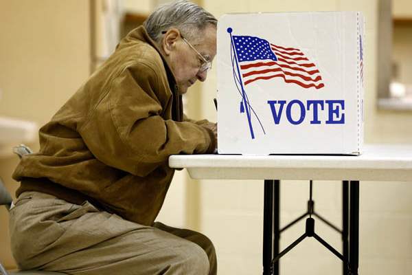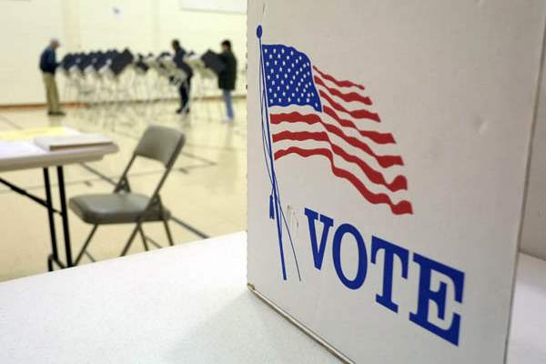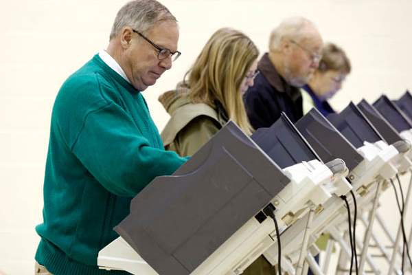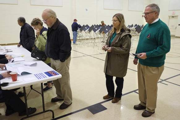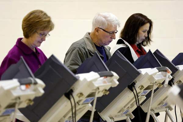 Terrie Weiss, from left, Jim Weiss, and Laurie Flowers vote.