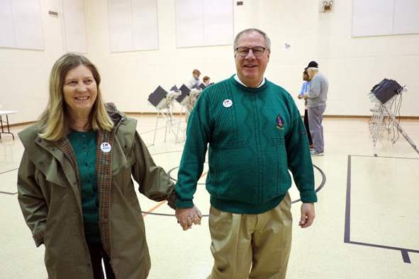 Toledo mayoral candidate D. Michael Collins and his wife, Sandra Drabik, his wife, leave the polling place.
