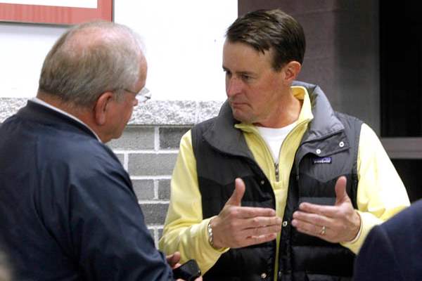 Lucas County Sheriff's Office, Patrick Mangold, left, and The Toledo Police Patrolman's Association Union President Dan Wagner, right, talk.