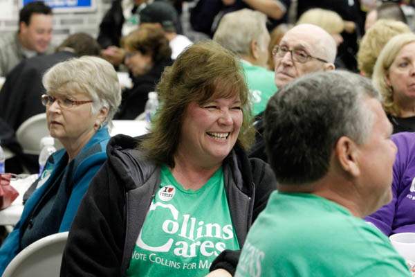 Supporter LidiaEbersole applauds D. Michael Collins.