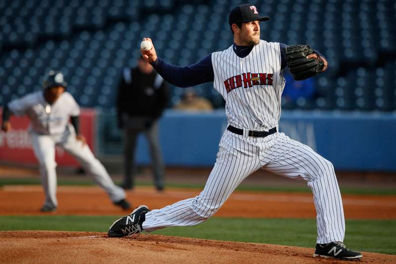 Pitcher Drew VerHagen throws against the Columbus Clippers.