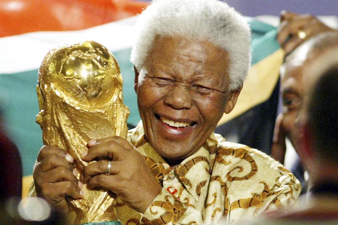 In this May 15, 2004 file photo, former South African President Nelson Mandela lifts the World Cup trophy in Zurich, Switzerland, after FIFA's executive committee announced that South Africa would host the 2010 FIFA World Cup soccer tournament. Mandela was pivotal in helping the country win the right to host the tournament. South Africa's President Jacob Zuma said, Thursday, Dec. 5, 2013, that Mandela has died. He was 95.