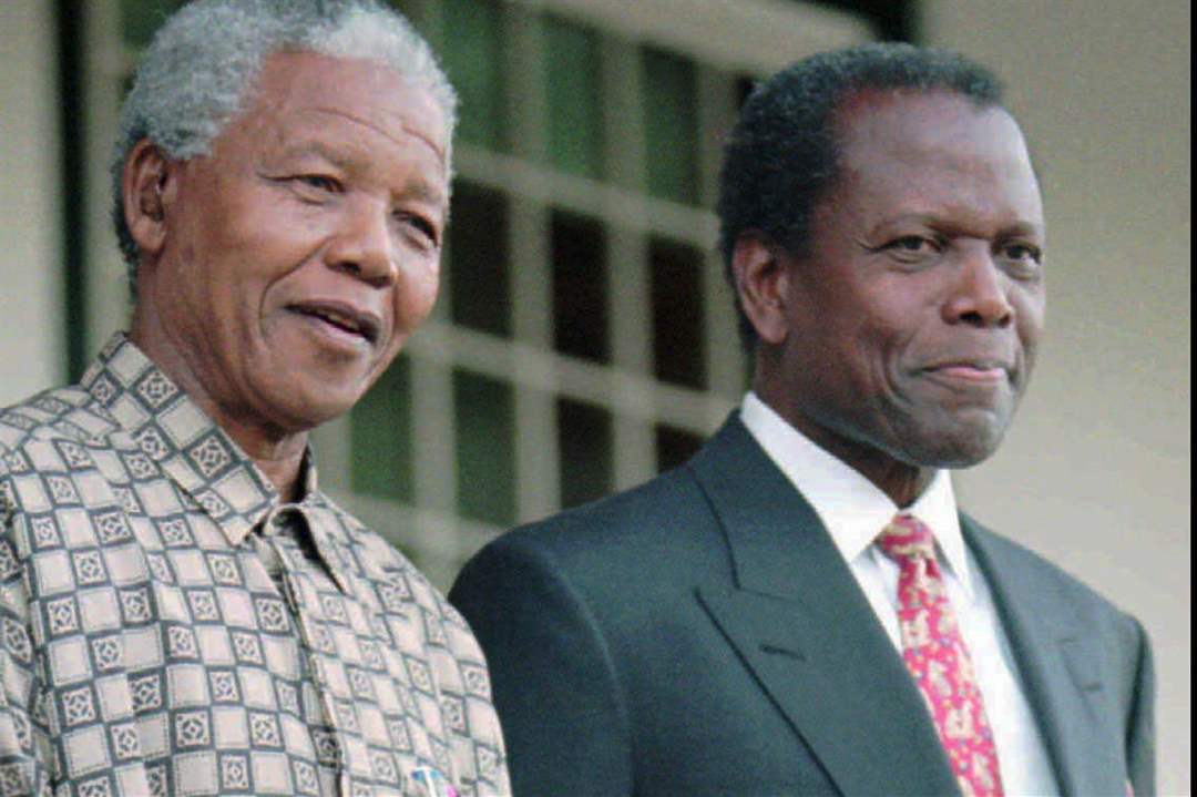 In this May 17, 1996 photo, South African President Nelson Mandela, left, and actor Sidney Poitier appear at a news conference in Cape Town. Poitier is in South Africa making a film in which he portrays Mandela, alongside Michael Caine, who plays former President F. W. de Klerk in "Mandela and de Klerk," about the country's transition from a white minority government to black majority rule.