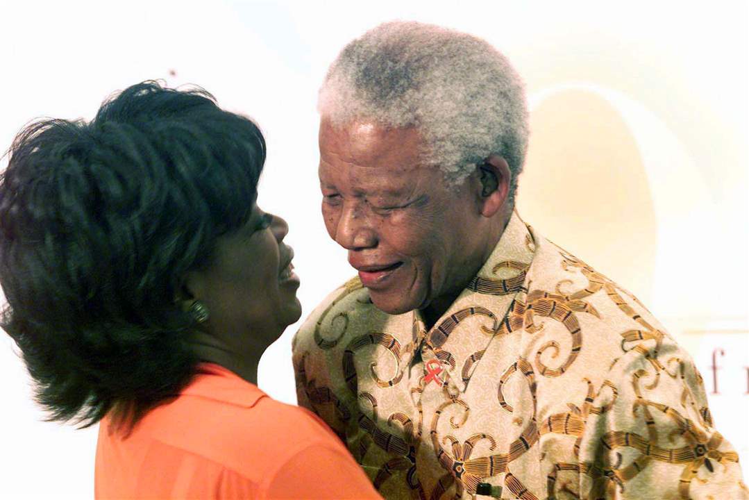In this Dec. 6, 2002 photo, former South African President Nelson Mandela, right, and American talk show host Oprah Winfrey embrace.