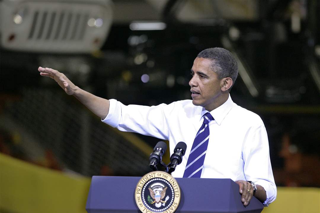 President Obama speaks during his visit to the Chrysler Group LLC's Toledo Assembly complex.