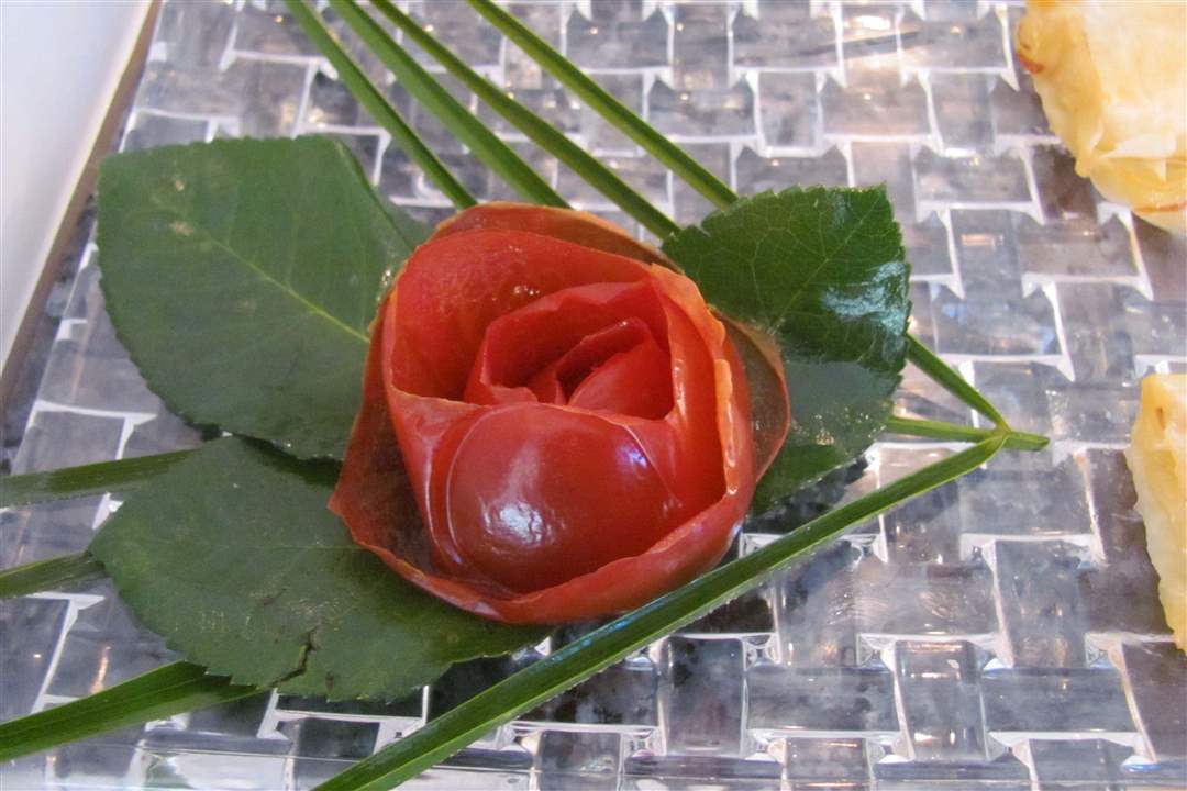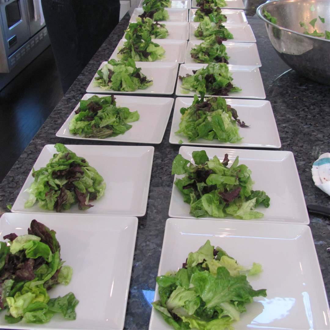 Allan and Susan Block entertained the French Ambassador to the United States in their home. Salad plates lined up for finishing touches.