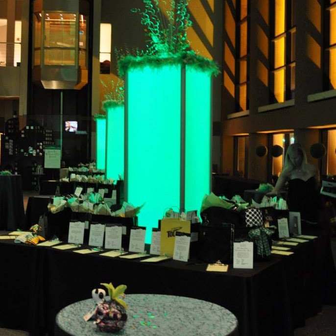 Brett Leonard and winning bidder Charlotte Larsen at Steppin Out 2014 to benefit Toledo School for the Arts.