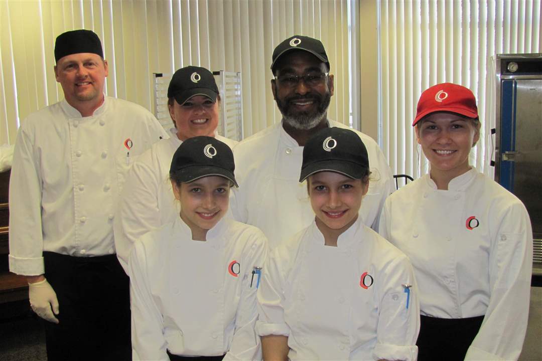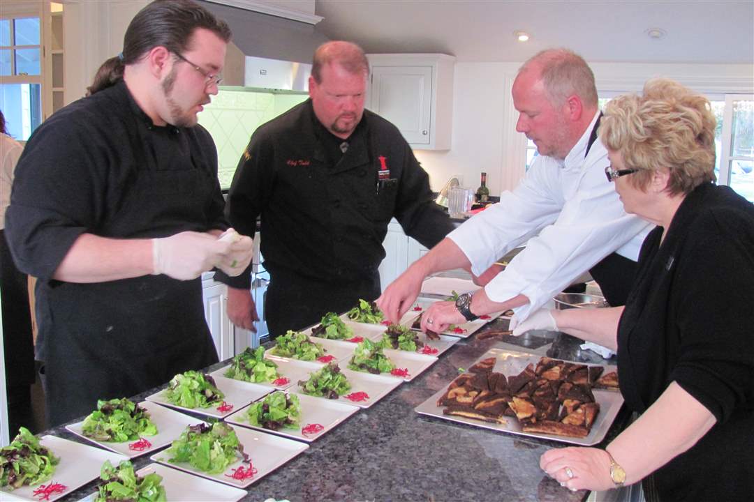 Louise Kowalski, left, Mr. Vanderpol, center left, Executive Chef Lance Scott, center right, and Judy Lodes, right, team up to prepare the salads.