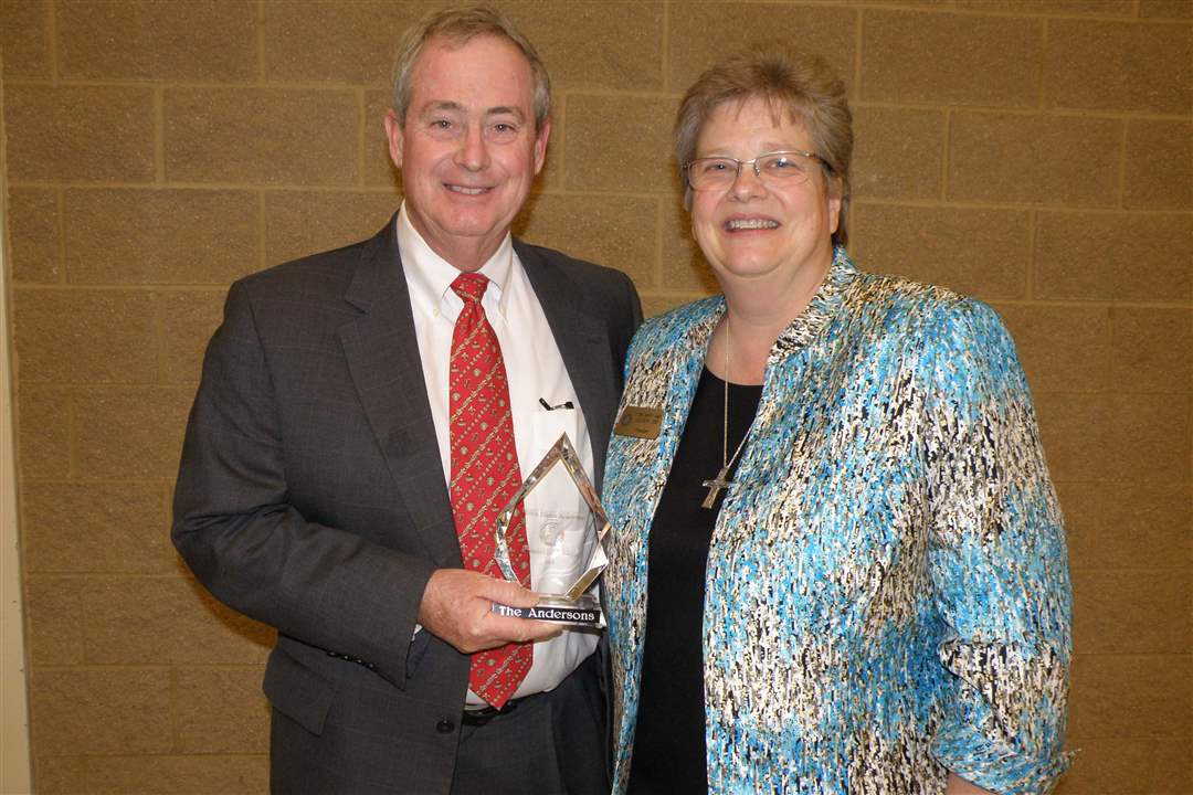 Mike Anderson with the Diamond Eagle Award and Sr. Mary Ann Culpert, SND NDA President.