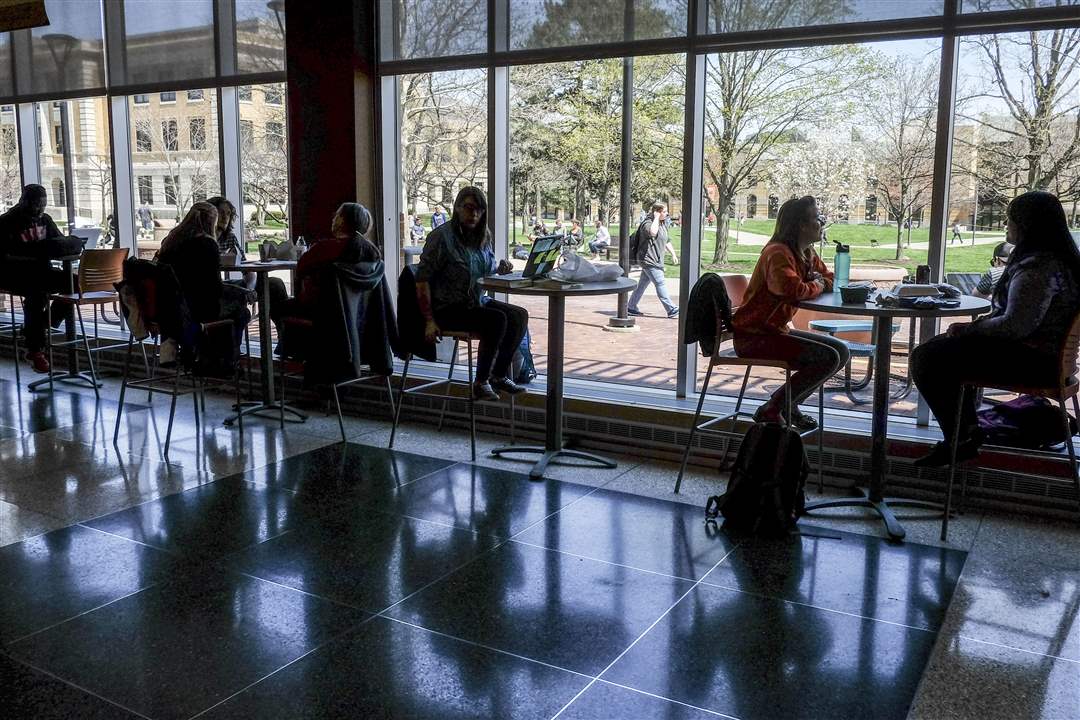 Students eat lunch at the student union Friday, 04/24/15, at Bowling Green State University in Bowling Green, Ohio.