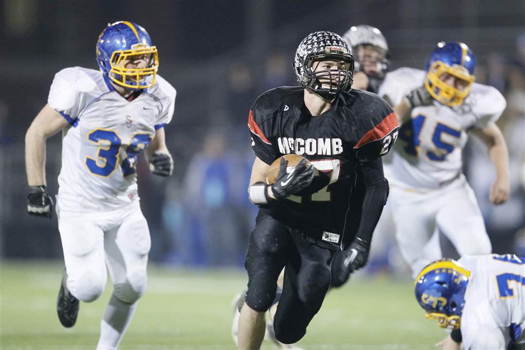 McComb High School player Cody Wilson, 27, returns a kickoff to the Delphos St. John's 37.