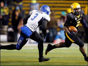 University of Toledo RB Kareem Hunt runs the ball against Buffalo during the third quarter.