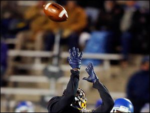University of Toledo WR Bernard Reedy (1) makes a catch and scores a touchdown against Buffalo FS Juwan Haynes (20) during the first quarter.