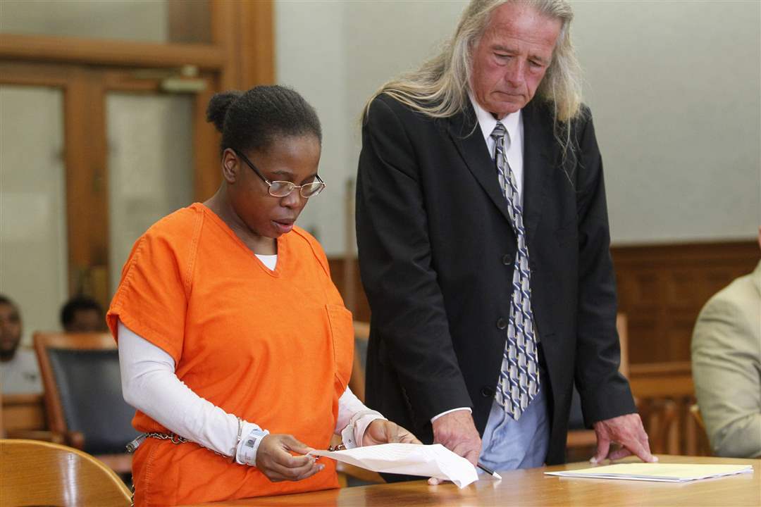 Sharnell Owens, 34, reads a letter to the families of the victims during her sentencing.