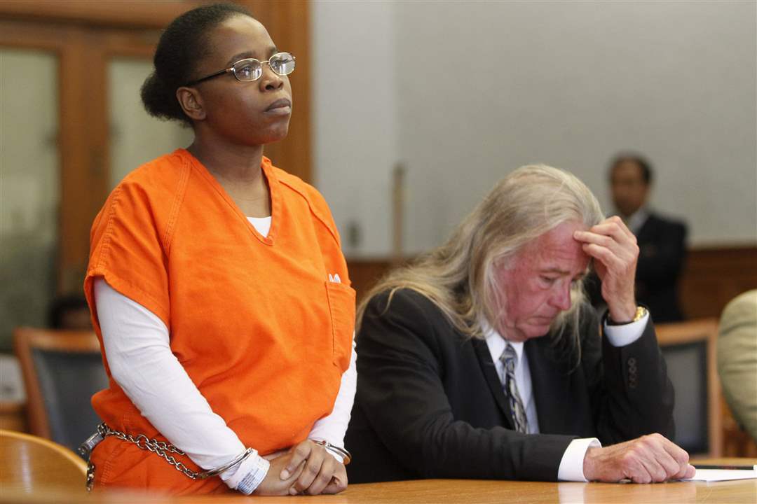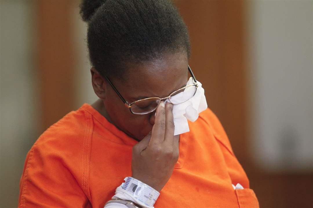 Sharnell Owens, 34, cries after reading a letter to the families of the victims during her sentencing on two counts of aggravated vehicular homicide for killing two women (Terry Traver, 53, and Tina Foufos, 26) while drunk driving.