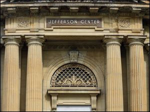 A woman sleeps on the steps of the Jefferson Center in Toledo.