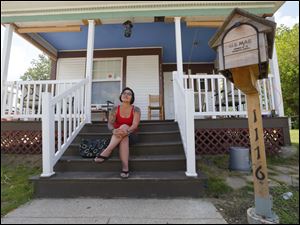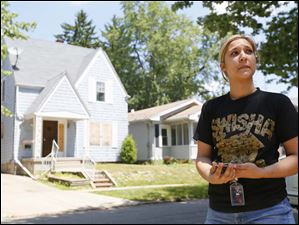 Lisa Oehmke, who is fixing up this house at 404 Walbridge Ave. in Toledo. She also owns the home across the street.
