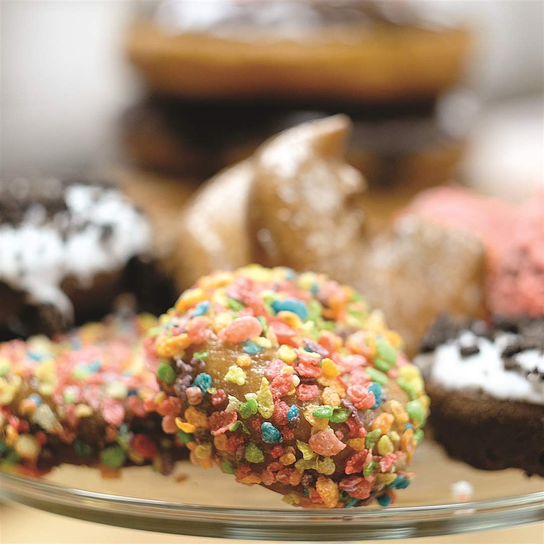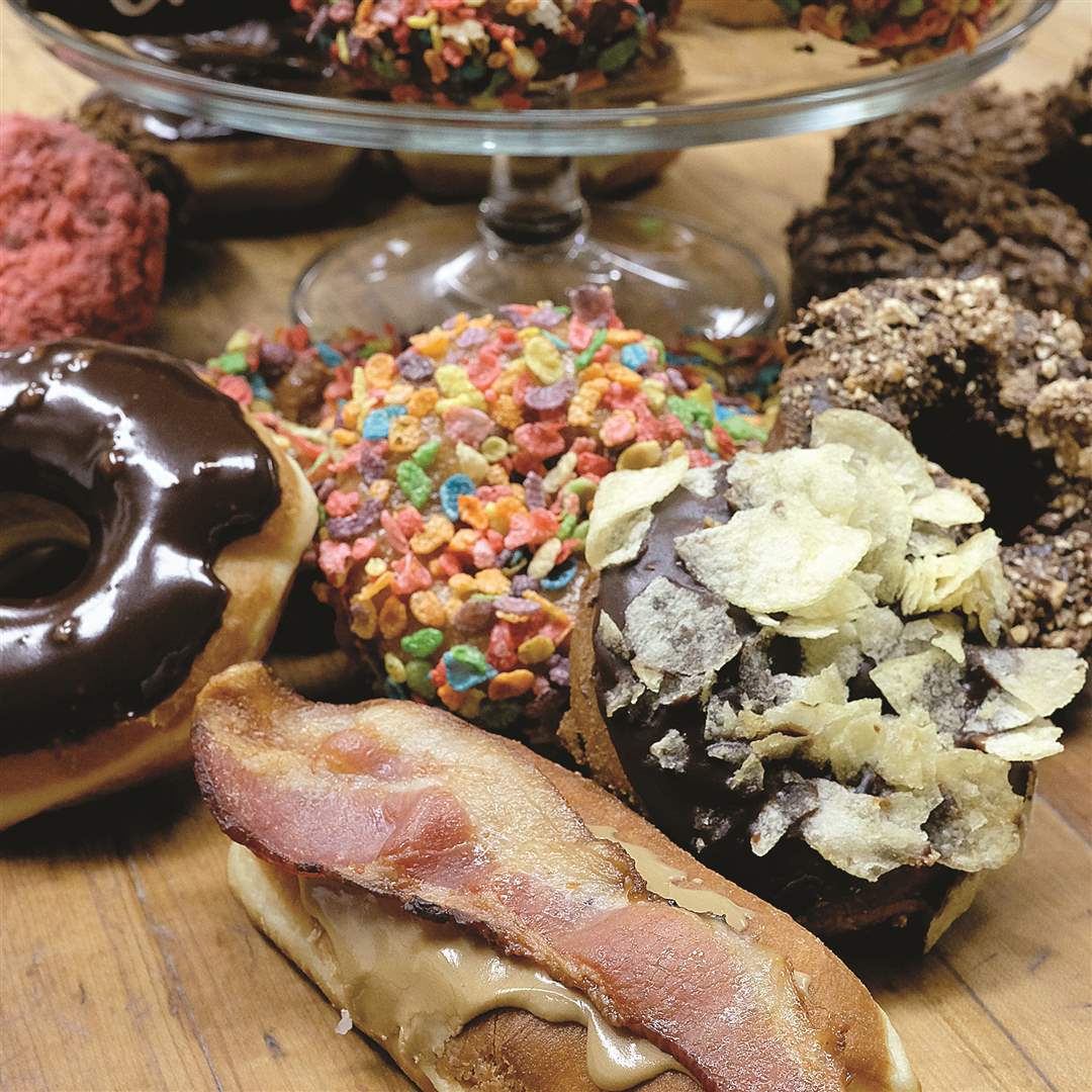 Gourmet donuts, including a bacon maple creme filled, at Wixey Bakery in Toledo.