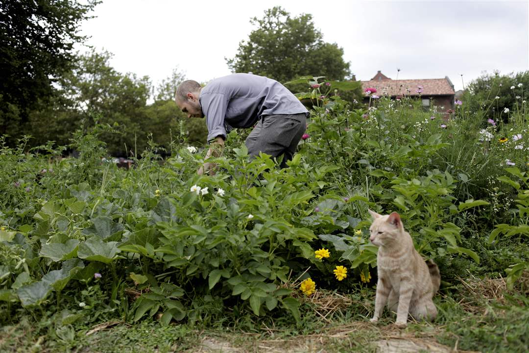 Sylvania resident Elliot Charney looks for ripe vegetables to pick.