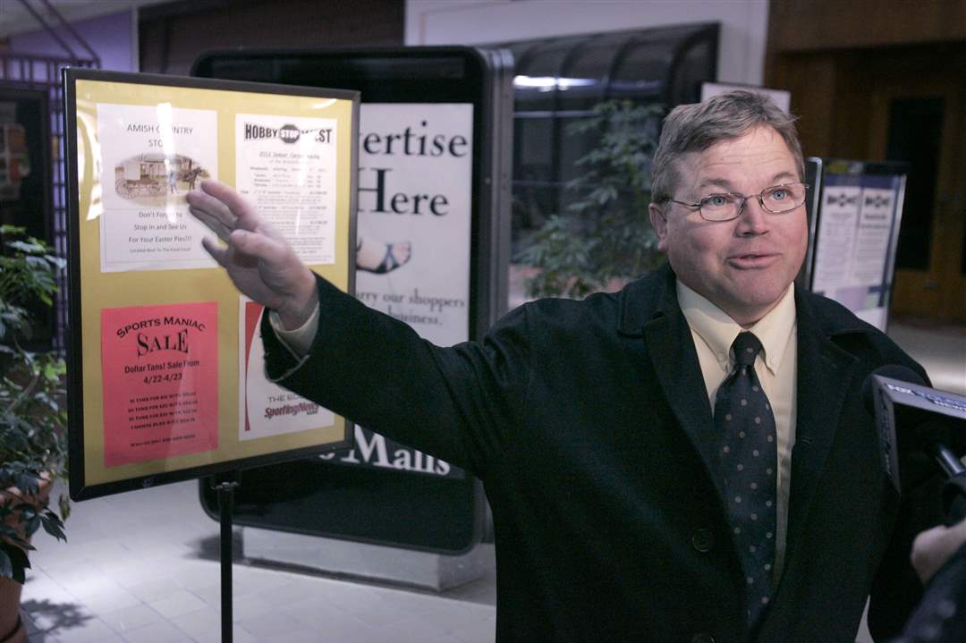 Brad Espen, director of Environment Health for Wood County, examines one of the stores' back rooms during inspection of Woodville Mall.