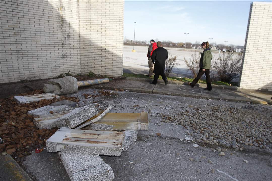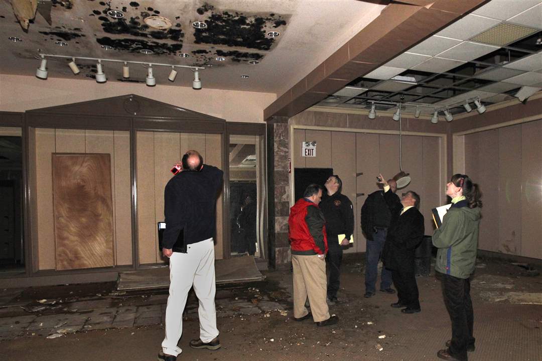 Northwood city and Wood County officials inspect the damage to a former store inside the Woodville Mall.