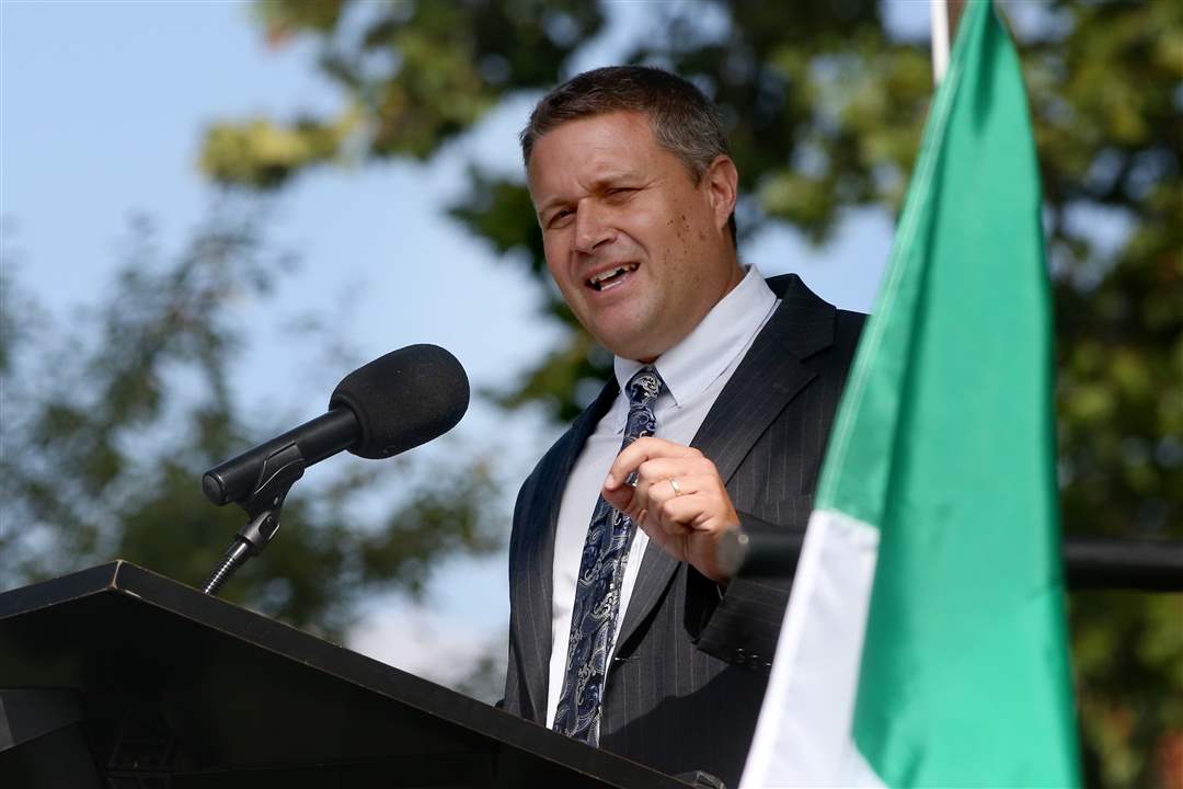 Adrian Mayor Jim Berryman delivers his remarks during the Italian-American Memorial service.