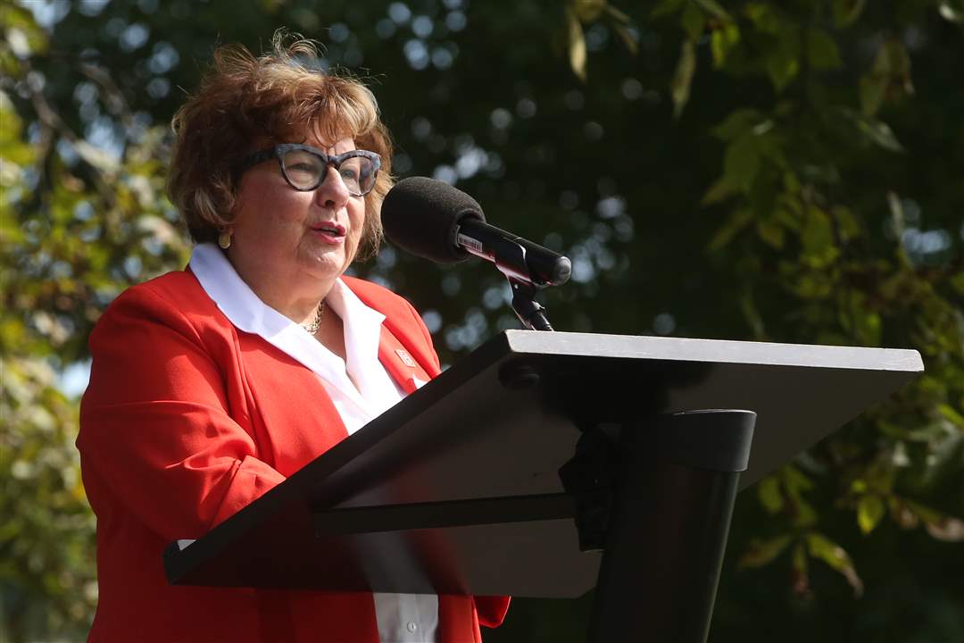 Sandra Tornberg, president of the Italian-American Cultural Society, delivers her remarks.