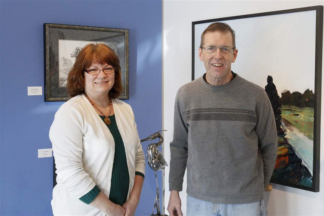 Tonnie, left, and Gary Hovey stand next to one of his sculptures on display at the American Gallery in Sylvania.