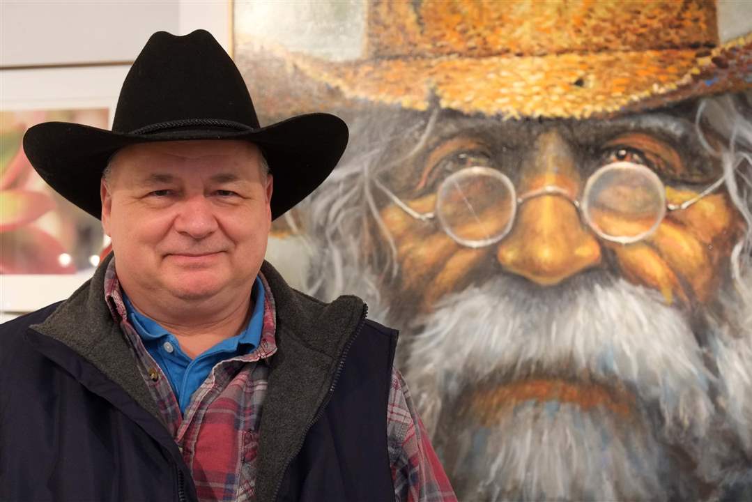 Dave Wisniewski poses with his painting 'Three Amigos."