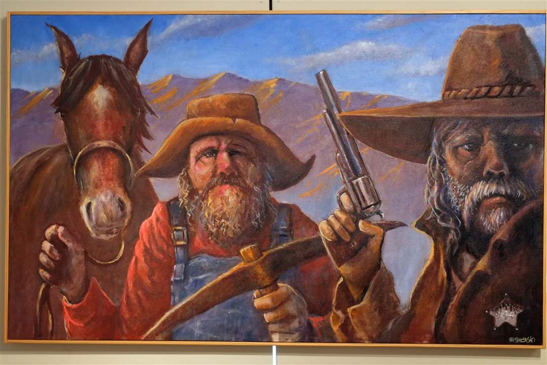 'Meanwhile, Back at the Mine,' a painting by Dave Wisniewski, on display at the American Gallery in Sylvania.