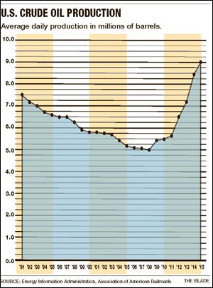 Overall domestic crude production has risen 70 percent during that same period. U.S. Energy Information Administration figures show domestic oil produced at a rate of 8.5 million barrels a day in 2014, up from 5 million barrels a day in 2008. This year, crude is expected to be produced at a rate of 9 million barrels a day, just shy of its peak rate of 9.6 million barrels a day in 1970, according to the Energy Information Administration.